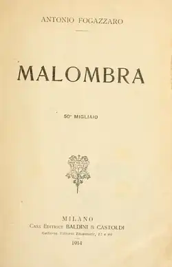 Malombra is an 1881 novel by the Italian writer Antonio Fogazzaro. It is a Gothic story set close to Lake Como in the mid-Nineteenth century. Of clear taste decadent, the novel reveals Fogazzaro's interest in occult matters.[1] It was Fogazzaro's debut novel.[2]
