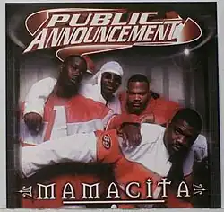 "Mamacita" a song by American R&B group Public Announcement. It was released as the first single from their third studio album Don't Hold Back (2000).[1] It became Public Announcement last top 40 charting song on the US Hot 100 chart where it peaked at No. 39.[2] The song gives a shout out to singer-songwriter R. Kellys hit song Bump N' Grind from the album 12 Play.