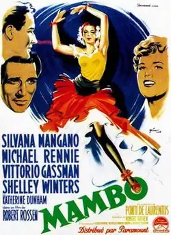 Mambo is an Italian/American international co-production film, produced by Dino De Laurentiis, Carlo Ponti and Paramount Pictures written and directed from 1952 to 1953 by Robert Rossen and released in 1955. A mambo craze spread through the USA in the 1950s, and Rossen aimed to repair his finances after almost two years without work since his 1951 House Un-American Activities Committee hearing.[1] The film co-stars Katherine Dunham who acted as the film's choreographer.