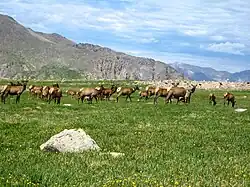 - Elk, Cervus elaphus, montane, and subalpine forests, meadows, tundra, abundant