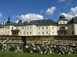 In 1712, a huge fire destroyed half of the town with the castle, church and school. Immediately after the fire, Václav Josef Lažanský had completely rebuilt the castle according to the plans by Jan Santini Aichel.[4]