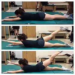 Scoliosis specific exercises have been found to improve treatment outcomes when utilized in addition to bracing and other standards of care.[18] Scoliosis specific exercises include methods such as Schroth[19] which specifically aim to correct aesthetic differences and strengthened muscles and connective tissue that may have atrophied as a result of scoliosis and asymmetric posture. The Schroth method is a three-dimensional exercise approach aiming to improve spinal curvature and vertebral rotational angles. A physical therapist guides the patient through breathing techniques and exercises to strengthen weak muscles and relieve overactive ones. In addition to spinal realignment, the Schroth method improves self-image, quality of life, and lumbar extensor strength.[20] Schroth exercises and other scoliosis specific exercises should be utilized in conjunction with bracing and other standards of care,[21] and be performed under the guidance of a trained professional to ensure the exercises are effective and target the individual's curve pattern so that the correct muscles are strengthened. Strengthening spinal muscles is a crucial preventive measure. This is because the muscles in the back are essential when it comes to supporting the spinal column and maintaining the spine's proper shape. Exercises that will help improve the strength of the muscles in the back include rows and leg and arm extensions.[22] Elastic resistance exercise may also be able to sustain the progression of spinal curvature.[23] This type of exercise is able to sustain progression by equalizing the strength of the torso muscles found on each side of the body.