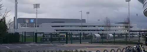 After relegation, the club underwent off-the-field upheaval, with new chairman David Bernstein introducing greater fiscal discipline.[32] Under manager Joe Royle, City were promoted at the first attempt, achieved in dramatic fashion in the Second Division play-off final against Gillingham.[33] A second successive promotion saw City return to the top division, but this proved to have been a step too far for the recovering club, and in 2001 City were relegated once more. Kevin Keegan replaced Royle as manager in the close season, and achieved an immediate return to the top division as the club won the 2001–02 First Division championship, breaking club records for the number of points gained and goals scored in a single season in the process.[34] The 2002–03 season was the last at Maine Road and included a 3–1 derby victory over rivals Manchester United, ending a 13-year run without a derby win.[35] Additionally, City qualified for European competition for the first time in 25 years via UEFA fair play ranking. In the close 2003–04 season, the club moved to the new City of Manchester Stadium. The first four seasons at the stadium all resulted in mid-table finishes. Former England manager Sven-Göran Eriksson became the club's first foreign manager when appointed in 2007.[36] After a bright start, performances faded in the second half of the season, and Eriksson was sacked on 2 June 2008;[37] he was replaced by Mark Hughes two days later.[38]