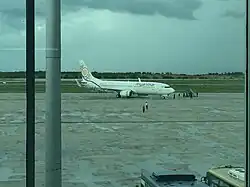 Opened on 17 September 2000, the terminal building can handle 1,000 passenger arrivals and 1,000 passenger departures per hour. The capacity of the airport is estimated to be 3 million passengers per annum, with an expansion capacity of more than 15 million.[15] The site occupies a total area of 10,123 hectares and is located in central Myanmar about 35 kilometres (22 mi) south of Mandalay near the town of Tada-U. The journey from the airport to the city center of Mandalay takes approximately an hour by car.[4][16]