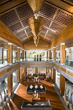 The Mandarin Oriental, Sanya (simplified Chinese: 三亚文华东方酒店; traditional Chinese: 三亞文華東方酒店) is a luxury hotel and resort located in Sanya City on the southeastern coast of the island of Hainan, China. The 296-room resort opened in 2009 and is managed by Mandarin Oriental Hotel Group. The hotel contains 10 restaurants and bars as well as the 3,200 m2 (34,000 sq ft) spa at Mandarin Oriental, Sanya.