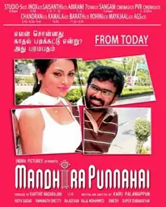 Mandhira Punnagai (transl. Magical Smile) is a 2010 Indian Tamil-language romantic psychological thriller film directed and co-written by Karu Palaniappan. The film stars himself and Meenakshi, with Santhanam, Rishi, and Thambi Ramaiah in supporting roles. The music was composed by Vidyasagar. The film was released on 19 November 2010.