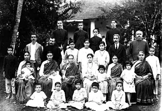 The Mangalorean Catholics constituted a small community widely scattered across the South Canara district. Rather than being a closely knit and united group, the Goan Catholic immigrants and their progeny did not associate with the native Catholics on account of caste, origin, and language, and even among themselves were strongly divided by caste.[13] The Hindu uppercastes, including the indigenous Brahmins (mostly belonging to the Shivalli, Havyaka, and Kota sub-groups) and Bunts did not associate with the Catholic Christians and would not admit them into their houses on account of their religion.[190] However, a close contact was kept by the Catholic Christians with the Hindus of the same caste who were migrants from Goa. Catholic Christians would invite their Hindu cousins to festivities such as birth celebrations, weddings, and funeral feasts. The Hindus accepted such invitations.[190] Unlike the Hindu counterpart, a high-caste Mangalorean Catholic did not consider himself polluted upon physical contact with a member of the lower castes, but members of different castes did not fraternise or invite each other home for dinner.[220] According to sociologist Vinay Rajath D, the relationship between caste and occupation was very tenuous among Catholic Christians, as Bamons as well as Sudirs consisted of cultivators, agricultural labourers, traders, masons, and cooks.[10]