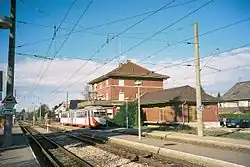 A direct, double-track, electrified line was also built in 1928 between Seckenheim and Wieblingen south of Edingen; this was opened on 6 October 1929 and was about six kilometres shorter than the single-track line through Neckarhausen. The original Edingen–Wieblingen section along the country road was replaced by a two-track and electrified line on a new alignment on 28 October 1928; the Wieblingen–Heidelberg section was simultaneously double-tracked and electrified. At the same time, Edingen (Baden) station was relocated to its present location and a new wagon hall was built.