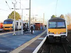 Immediately east of the station there is a triangle of junctions, known as the Manningtree South, North and East junctions and originally each double-track junction was controlled by an individual signal box. In 1926 the London and North Eastern Railway installed a new power box at Manningtree South which controlled all three junctions.[3] Today, the north to east curve connecting Ipswich with Harwich Town is a single track, having been reduced from double-track.[4] All three sides of the triangle are electrified.