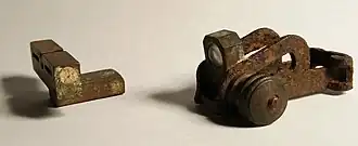 A number of Model 1916 night (Luminous) sights were issued during World War I.[17] The rear night sight is a small brass plate that is placed underneath the rear sight leaf. The front sight clamps around the rifle's front sight base.[18]