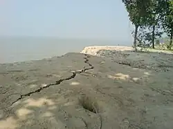 Soil on the verge of erosion along the shore | |