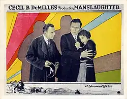 Manslaughter is a 1922 American silent drama film directed by Cecil B. DeMille and starring Thomas Meighan, Leatrice Joy, and Lois Wilson. It was scripted by Jeanie MacPherson adapted from the novel of the same name by Alice Duer Miller. Art direction and costumes for the film were done by Paul Iribe.[2]