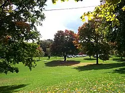 A statue of former slave and renowned Underground Railroad conductor Frederick Douglass which was located in Maplewood Park was vandalized and torn down over the weekend of July 4, 2020.[3][4][5] The site of the present-day park was located along the Underground Railroad where Douglas and Harriet Tubman helped shuttle slaves to freedom.[5] The statue is a replica of statue of Frederick Douglass in Rochester, New York. Removal also occurred on the anniversary of Douglas' famous 1852 anti-slavery speech at this location.[6]