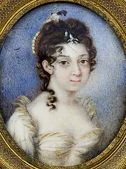 During this interim, she met José de San Martín, one of several generals from the Peninsular War who had recently moved to Buenos Aires. Most historians consider that they developed a love at first sight; however, the aristocratic stature of the Escalada, the social customs of the time and San Martín's own political agenda would suggest instead that it could be an arranged marriage between San Martín and the Escalada.[1] With this marriage, the Escalada arranged ties with a general of a promising career, and San Martín could leave the social isolation of his recent move, getting ties with the aristocracy of the city.[2] Even so, San Martin had conflicts with his political family, by rejecting their aristocratic ways. A dinner with Bernardino Rivadavia ended in an incident between them.[3]