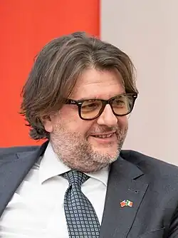 Marco Osnato (born 20 March 1972) is an Italian politician of Brothers of Italy serving as a member of the Chamber of Deputies. He was first elected in the 2018 general election, and was re-elected in 2022.[1] Since 2022, he has chaired the Finance Committee.[2]