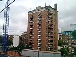 Nelson Square consisted of high terraces built in the period 1807–1810. Not much now remains of the original buildings: a World War II bombing raid did damage to those that housed the Settlement.[29][22] The 1912 Victoria County History of Surrey wrote that the Square "presents a pleasing old-world appearance".[30] Comment on the school for invalid children at the WUS ("who are able to go out, but are not strong enough to go to school") in 1894, said that "Nelson Square, with its trees and open space, is the one spot in a neighbourhood of slums and busy thoroughfares that is suited for such a home".[31] The WUS under Margaret Sewell was credited with the innovation: in 1893 "the settlement arranged for the first 'Invalid Centre,' a modest attempt with a nucleus of six to ten children".[32]