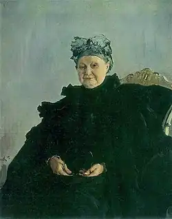 Maria Fyodorovna Morozova (Russian: Мария Фёдоровна Морозова; 1830–1911) was a Russian entrepreneur. She was the daughter of merchant Fyodor Simonov, married to merchant Timofei Savvich Morozov and mother of merchant Savva Morozov. She was the sister-in-law of Varvara Alekseevna Morozova, also an entrepreneur and philanthropist. She was a leading member of Morozov dynasty part of the Russian merchant elite. She was known for her influence in society. She was awarded for her efforts within the Office of the Institutions of Empress Maria.
