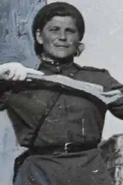 Born in 1924 as Mariya Limanskaya, she joined the Red Army in 1942, at the height of World War II. She was 18.[3][4] At that time the Soviet Stavka ("high command") increasingly lacked trained reserves to reinforce the entire 2,000-kilometre (1,200 mi) front, and as a result began to conscript underage boys and girls.[5] Almost 800,000 women would eventually serve in the Red Army throughout the war.[6] On several occasions she was nearly killed. At one point, she left a building a few seconds before it was leveled by a bomb attack. She also contracted malaria.[4][7] During the war, Limanskaya regulated the movement of troops across the Don under enemy fire, and participated in the Battle of Stalingrad and the liberation of Belarus and Poland.[8]