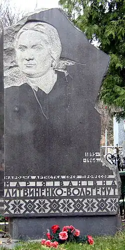 Maria Ivanovna Litvinenko-Volgemut died on 3 April 1966 in Kiev and buried in the Baikove Cemetery.[1]