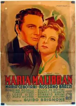 Maria Malibran is a 1943 Italian historical drama film directed by Guido Brignone and starring Maria Cebotari, Rossano Brazzi, and Renato Cialente. It is based on the life of the Spanish singer Maria Malibran.[1] It was shot at the Cinecittà Studios in Rome. The film's sets were designed by the art directors Virgilio Marchi and Gino Brosio.