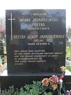 In 1939, at the onset of World War II, she followed her third husband, Stefan Jasnorzewski, to England. She was diagnosed with bone cancer in 1944, soon becoming hemiplegic, and on 9 July 1945 died in Manchester, cared for to the last by her husband. She is buried with her husband in Southern Cemetery, Manchester.