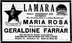 Maria Rosa is a surviving 1916 American silent drama film directed by Cecil B. DeMille. It was based on a 1914 Broadway stage play Maria Rosa by Àngel Guimerà. On the stage the principal parts were played by Dorothy Donnelly and Lou Tellegen, future husband of this film's star Geraldine Farrar.[2][3]