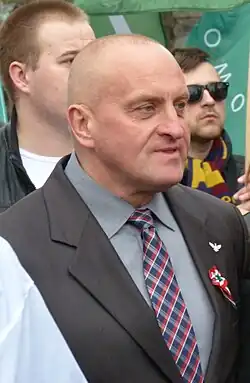 Marian Janusz Kowalski (born 15 August 1964 in Lublin) is a Polish political activist, columnist and former bodybuilder. He was the official candidate of the National Movement for the office of President of Poland in the 2015 Polish presidential election and served as Vice-Chairman of the party from 2014 to 2015. In the first round he received 0.52% of votes, which gave him ninth place among the candidates.[1]