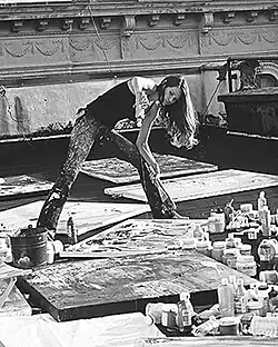 Channeling the "Summer of Love" spirit of the 1960s, Aulie has always embraced nudity and physical symbolism in her artwork. A career performance artist, she's promoted her work by swimming naked out to sea with her paintings, splashing her work with champagne as part of the process, and burning her paintings.