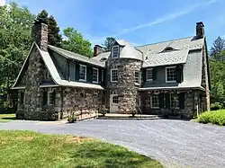 Built circa 1910, this historic structure is a large 2+1⁄2-story, fieldstone dwelling with a gambrel roof with large dormers. It has a two-story, stone rear wing with a steep gable roof. The intersection of the main house and wing features a round, two-story tower, giving the house a French Provincial style. The house is set within a farm complex with two large frame barns, a smaller frame house, and associated outbuildings. It was the home of noted artist Marie Zimmermann (1879–1972).[2]