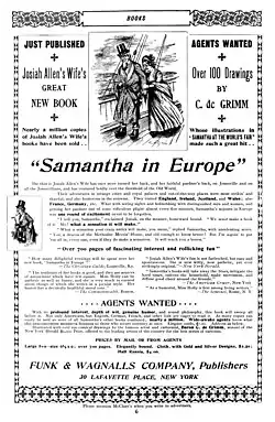 - Samantha in Europe. New York: Funk and Wagnalls, 1895
