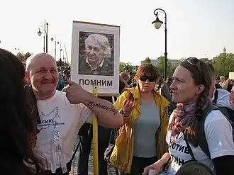 ![]() A portrait of Salye during the 2012 protests following the 2011 Russian elections | |