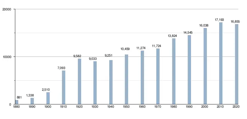 As of the census[13] of July 1, 2022, there were 16,729 people, and 8,028 households residing in the city. The population density was 1,171.1 per square mile in 2020. There were 7,555 housing units at an average density of 589.0 per square mile (227.4/km2). Owner-occupied housing rate is 62.0%. Median value of owner-occupied housing is $143,600, and median gross rent is $823 per month.