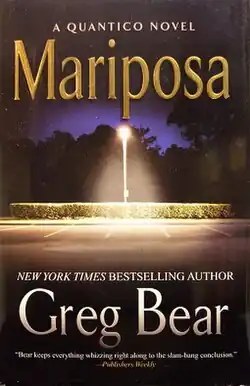 Mariposa (2009) is a science fiction novel written by Greg Bear as both a sequel to Quantico and a prequel to Queen of Angels, featuring characters from both earlier works. Set in 2021 America, whose government is more than fifty trillion dollars in debt, the novel follows an FBI investigation of the Talos Corporation (a thinly disguised Blackwater) which plans to disable the power grid across the entire Eastern seaboard in a simultaneous, coordinated attack of domestic terrorism, which will trigger the provisions of a law Congress passed authorizing Federal lands and resources as collateral to continue borrowing funds from overseas. Unexpected help comes from a secret weapon in the Federal arsenal, non-nuclear EMP, as well as a mute Mind Design proto-AI named Jones, early precursor to Jill, who has a back door into Talos.