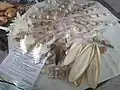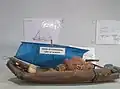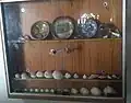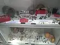 The 17th and 18th century antiquities and relics from the Vijayanagara empire and Thanjavur Nayak kingdom, which authorized, allowed, and sanctioned the aforementioned Danish port township connected with the colonial period and Danish settlement at Tharangampadi are exhibited.[4] The museum contains porcelain ware, Danish manuscripts, glass objects, Chinese tea jars, steatitle lamps, decorated terracotta objects, figurines, lamps, stones, sculptures, swords, daggers, spears, sudai (stucco) figurines and wooden objects. There is also part of a whale skeleton, a giant sawfish rostrum and small cannonballs.[5]