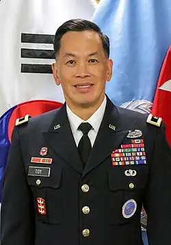 Richard Mark Toy is a retired United States Army major general who served as the Chief of Staff of the United Nations Command from August 10, 2020, to June 2022. He previously served as the Commanding General of the Mississippi Valley Division from August 16, 2019, to June 30, 2020.[1][2][3][4][5]