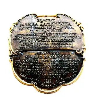 Społeczenstwo miasta i gminy Tykocin (in Esperanto) Memore to Mark Zamenhof that was born 27•01•1837 in Tykocin Author of textbooks. Teacher of French and German languages.