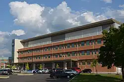 The original complex was built by Mathers & Haldenby Architects and the current expansion by Bregman+Hamann and Perkins+Will.