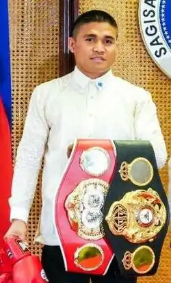 ![]() Tapales with the IBF (red) and WBA (black) super-bantamweight titles, 2023. | |