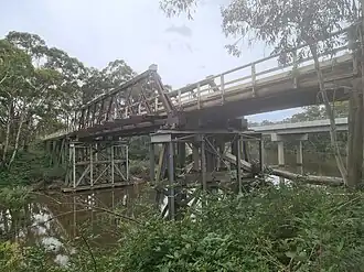 The old Charleyong bridge over the Mongarlowe River is an Allan truss bridge completed in 1901.[17] A reinforced concrete bridge opened on 9 March 2020 has replaced it. The old bridge is expected to be demolished, starting in early 2021,[19] despite some community opposition.[17]