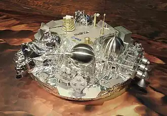 As of 2023, the Soviet Union, United States, and China have conducted Mars landings successfully.[1] Soviet Mars 3, which landed in 1971, was the first successful Mars landing, though the spacecraft failed after 110 seconds on the surface. All other Soviet Mars landing attempts failed.[2] Viking 1 and Viking 2 were first successful NASA landers, launched in 1975. NASA's Mars Pathfinder, launched in 1996, successfully delivered the first Mars rover, Sojourner. In 2021, first Chinese lander and rover, Tianwen 1,[3] successfully landed on Mars. The British Beagle 2 landed in 2003, but because of loss of contact and mission failure its landing would only be confirmed in 2015.[4]