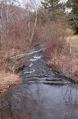 Upstream of Silo Road, the streambed of Marsh Creek mainly consists of fine sand. Downstream of that road, the streambed consists of coarse gravel, with an average particle size of 20.3 millimetres (0.80 in).[3] The surficial geology along the creek in its lower reaches mainly consists of alluvium. Further away from the creek, there is a glacial or resedimented till known as Wisconsinan Till, as well as a few patches of Wisconsinan Ice-Contact Stratified Drift and bedrock consisting of sandstone and shale. There is Wisconsinan Outwash near the mouth of the creek and two patches of wetland near Broadway.[5] The upper reaches of the watershed are mainly dominated by Wisconsinan Till, with bedrock occurring along the edges of the watershed. There are also a few patches of alluvium and three patches of wetland.[6]