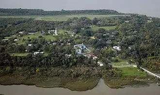 ![]() Aerial photograph of Martín García Island from the west, with airstrip visible in background | |
