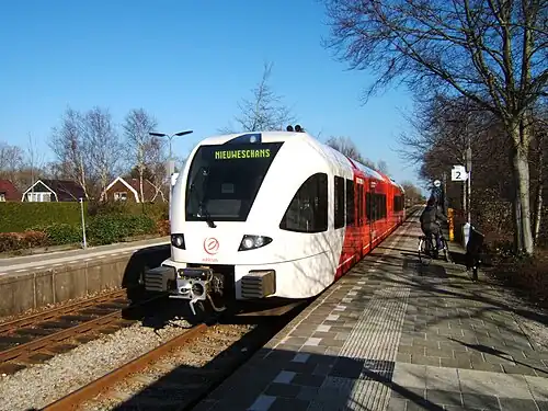 Groningen - Hoogezand-Sappemeer - Zuidbroek - Winschoten (- Bad Nieuweschans) | Local ("Stoptrein") | Arriva | 1x per hour - 1x per 2 hours on Sundays. During morning rush hour and on evenings, a couple of runs run through to Bad Nieuweschans. |