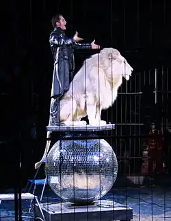 Lacey is the director of predatory animals at Circus Krone, the largest circus organisation in Europe.[1] As well as lions, he also works with a rhinoceros.[2]