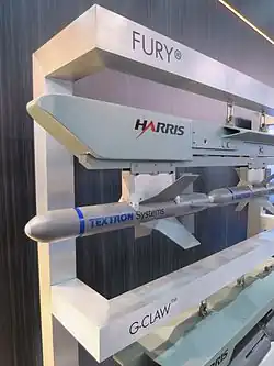 The bomb is not intended to replace larger munitions, but be used as a smaller and cheaper alternative to self-propelled missiles, with three bombs able to fit on a single Hellfire missile rail. It is 70 cm (28 in) long, weighs 5.8 kg (13 lb), and uses a 2 kg (4.4 lb) dual-effect shaped charge and pre-fragmented blast warhead for use against armoured vehicles, small boats, and personnel, with an operational range of 4 km (2.5 mi) when launched at 10,000 ft (3,000 m). A potential role for the Fury could be to arm medium intelligence, surveillance and reconnaissance (ISR) UAVs like the RQ-7 Shadow to deal with fleeting or time-sensitive targets.[18][19][20]