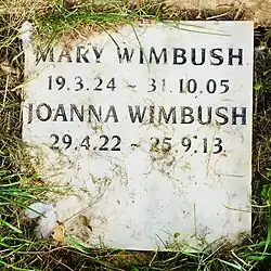 Wimbush was buried in Berkhamsted next to the graves of her parents in Rectory Lane Cemetery. Mary's elder sister, Joanna, was also buried there in 2013.[4]