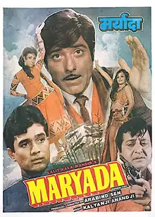 Maryada (meaning decorum, conduct) is a 1971 Indian Hindi-language tragedy film directed by Arabind Sen. The film stars Rajesh Khanna, Raaj Kumar and Mala Sinha. This film is counted among the 17 consecutive hit films of Rajesh Khanna between 1969 and 1971, by adding the two-hero films Marayada and Andaz to the 15 consecutive solo hits he gave from 1969 to 1971.[1][2]