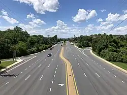 In 1972, the American Association of State Highway Officials approved for the US 240 designation to be removed.[26] As a result, MD 355 was extended south along the former US 240 alignment to the Washington, D.C. border.[27] MD 355 was widened into a divided highway between Rockville and Gaithersburg in 1977.[28] The divided highway was extended north from Gaithersburg to Germantown by 1997.[29] In 2006, the northern terminus of MD 355 at the interchange with US 15 in Frederick was truncated to a dead end a short distance south of that route.[30] In 2009, the portion of MD 355 north of the I-70 overpass was transferred to the city of Frederick, with the MD 355 designation officially being removed from this stretch.[31] In 2010, an interchange was completed at Montrose Parkway.[32]