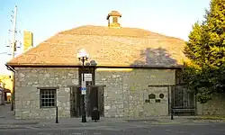 Marysville was located on the Oregon Trail and the route of the Pony Express, the St. Joe Road, the Overland Stage, The Military Road, and the Otoe-Missouria Trail. British explorer Richard Francis Burton en route to California in 1860 noted: "Passing by Marysville, in old maps Palmetto City, a country-town which thrives by selling whiskey to ruffians of all descriptions ..."[5] The old Pony Express Station still stands in downtown Marysville.[6] In Beyond the Mississippi (1867), Albert D. Richardson, who passed through Marysville in 1860, wrote that the town—which was named after the Border Ruffian Marshall's wife—"had 50 houses and was famed for whisky and shooting affrays."[7]