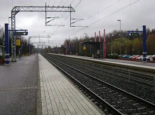 Masala railway station (Finnish: Masalan rautatieasema, Swedish: Masaby järnvägsstation) is a station on the Helsinki commuter rail network located in the Masala district of Kirkkonummi, Finland, between the Kauklahti and Jorvas stations. The station is served by Helsinki commuter rail lines Y, U and L.